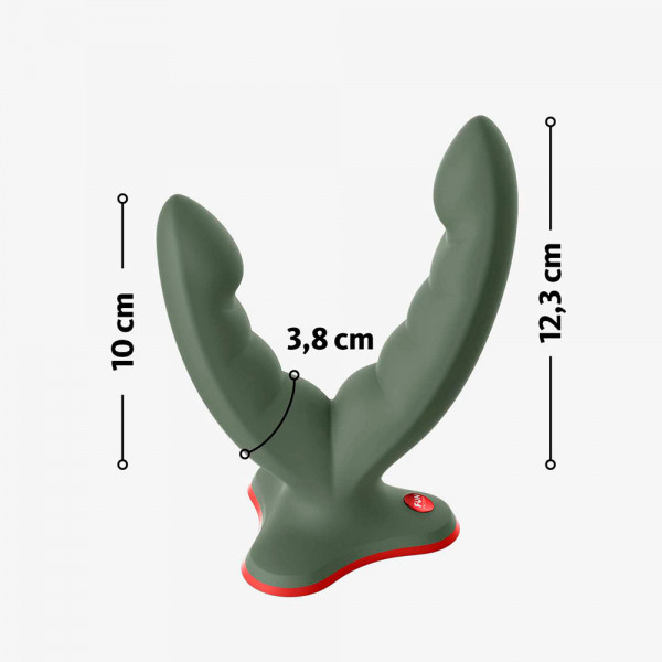 Выполнен девайс в виде двух рельефных фаллоимитаторов разного размера. Гибкость девайса, продуманная до мелочей конструкция и потрясающий материал позволяют использовать его для одновременной вагинально-анальной стимуляции, а также соединять два ствола вместе для чувственных вагинальных ласк. Кроме того, один из стволов может использоваться для внешней стимуляции, когда второй находится анально либо вагинально