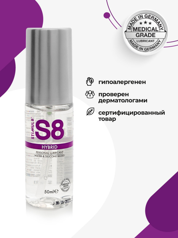 Гель "Stimul 8 Hybrid" сочетает в себе длительное скольжение силикона и нежность водной основы! Не скатывается, не создает чувство липкости и вязкости. Отлично смывается водой